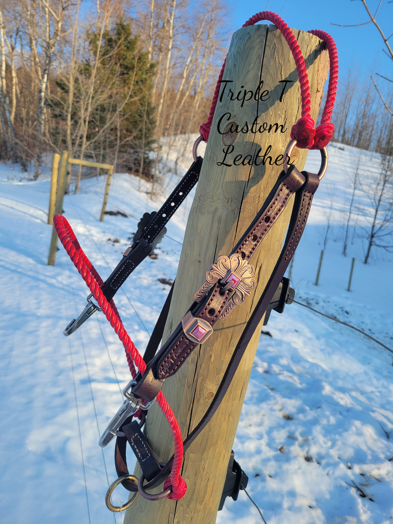 The "Game Changer" is a combination of a headsetter and a tie down all wrapped up into one bridle. They are very helpful for horses who tend to get strung out in the pattern or ones who struggle to collect. The crown piece and noseband are rope to provide good feel to you horse. This is meant to be a training aid, but is not suggested for very green broke horses.